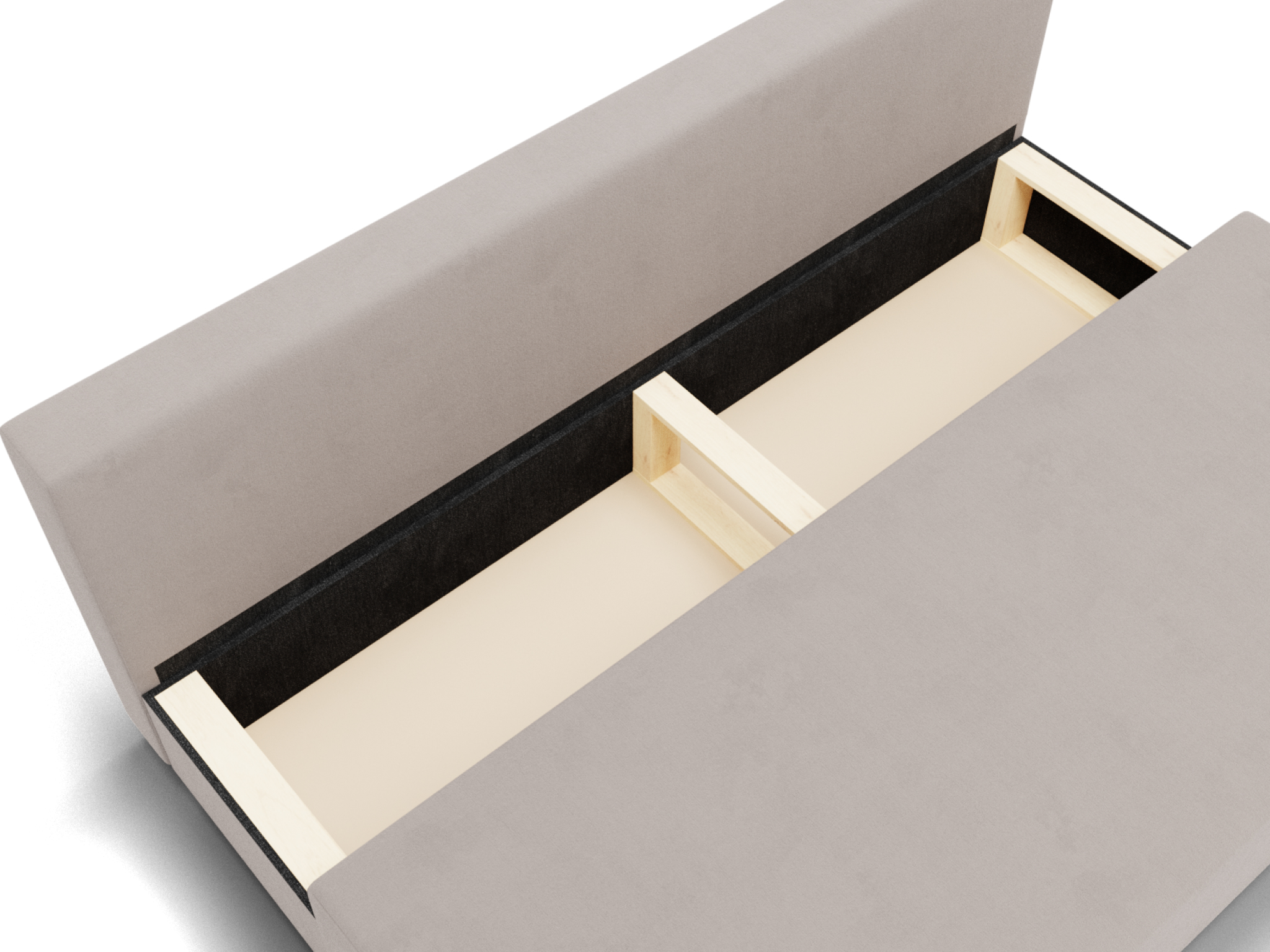Материал каркаса дивана-кровати изготовлен из ДВП, ЛДСП и массива дерева, что обеспечивает прочность и долговечность. Наполнитель выполнен из пенополиуретана, что делает диван мягким и удобным для сидения.