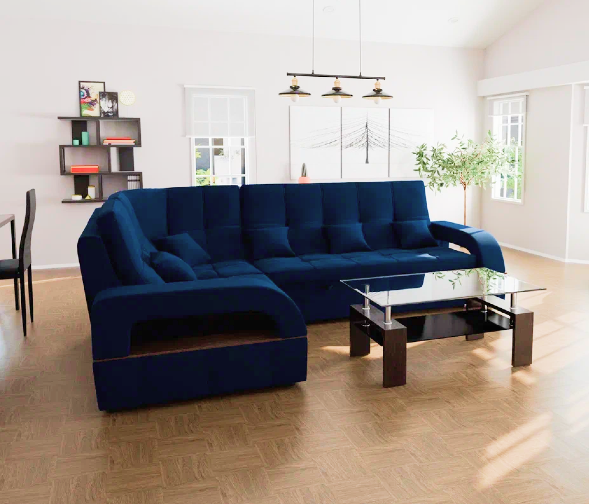Он имеет высоту 97 см, ширину 187 см и глубину 268 см. Диван обладает универсальным расположением угла, что позволяет его использовать в любом помещении.