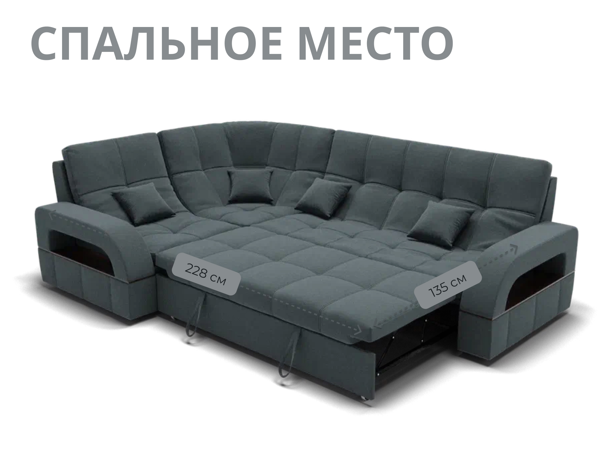Спальное место имеет ширину 135 см и длину 211 см. Он предназначен для двух человек и имеет глубину сиденья 65 см. Максимальная нагрузка на диван составляет 280 кг.