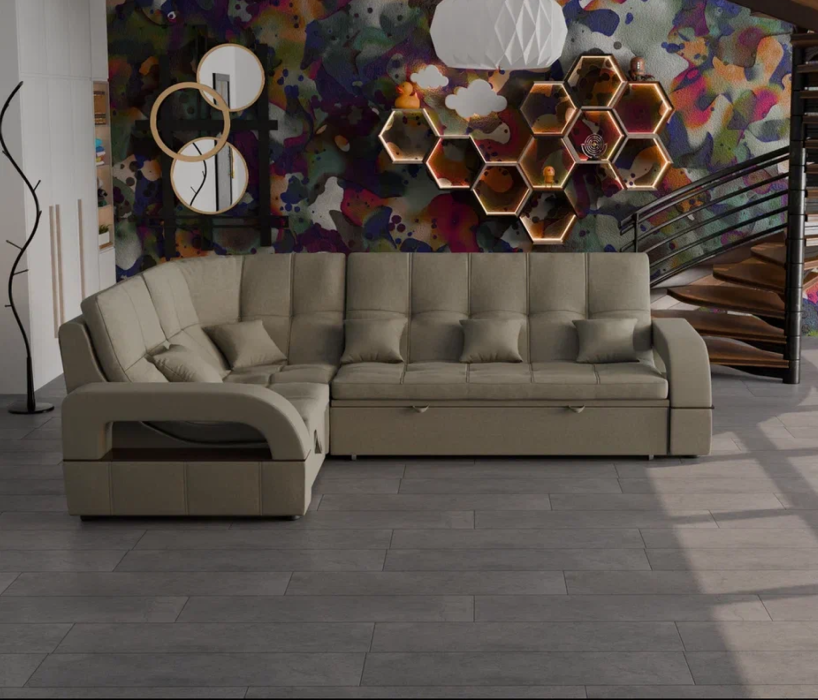 Он имеет высоту 97 см, ширину 187 см и глубину 268 см. Диван обладает универсальным расположением угла, что позволяет его использовать в любом помещении.