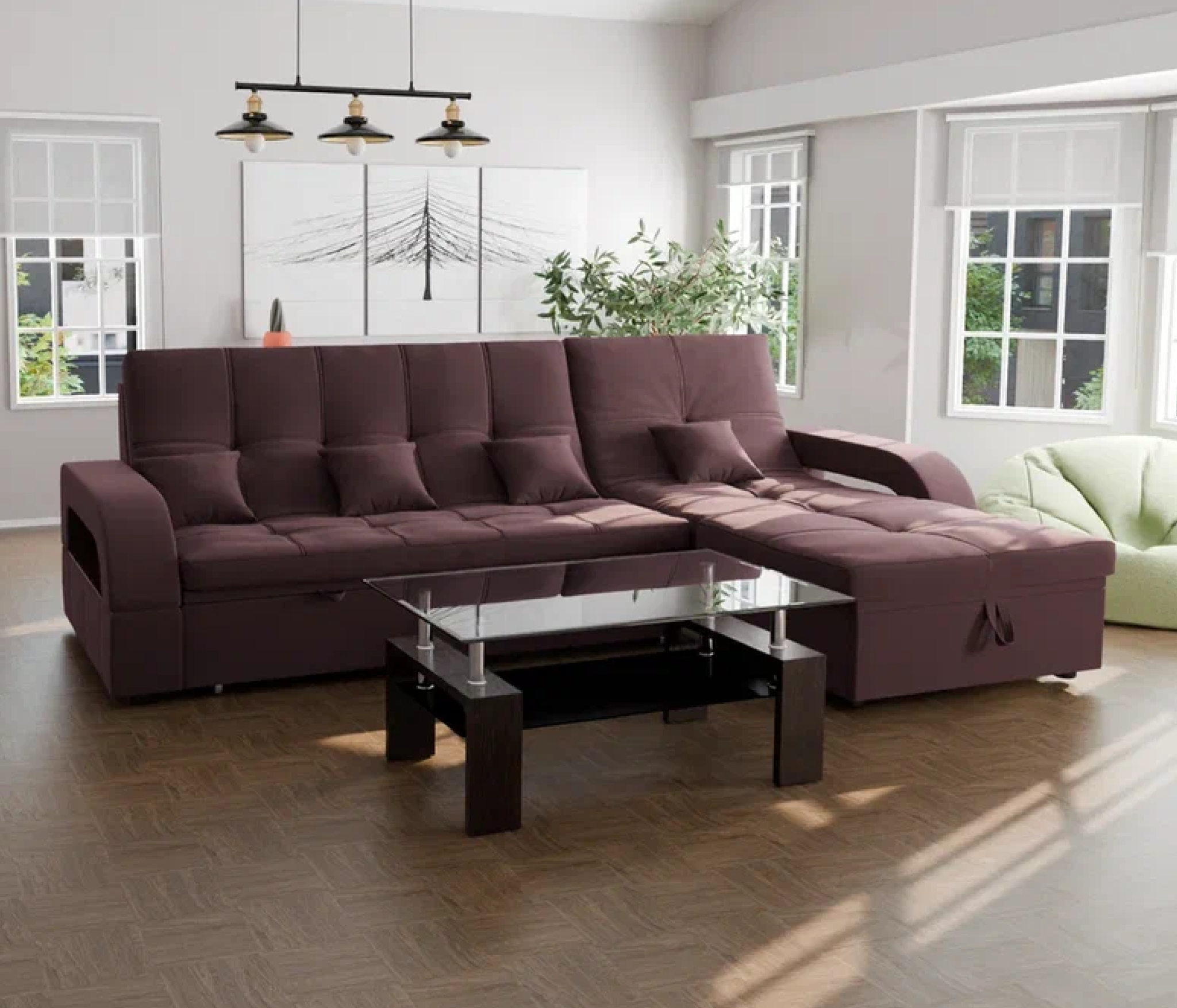 Спальное место имеет ширину 135 см и длину 228 см. Он предназначен для двух человек и имеет глубину сиденья 65 см. Максимальная нагрузка на диван составляет 280 кг.