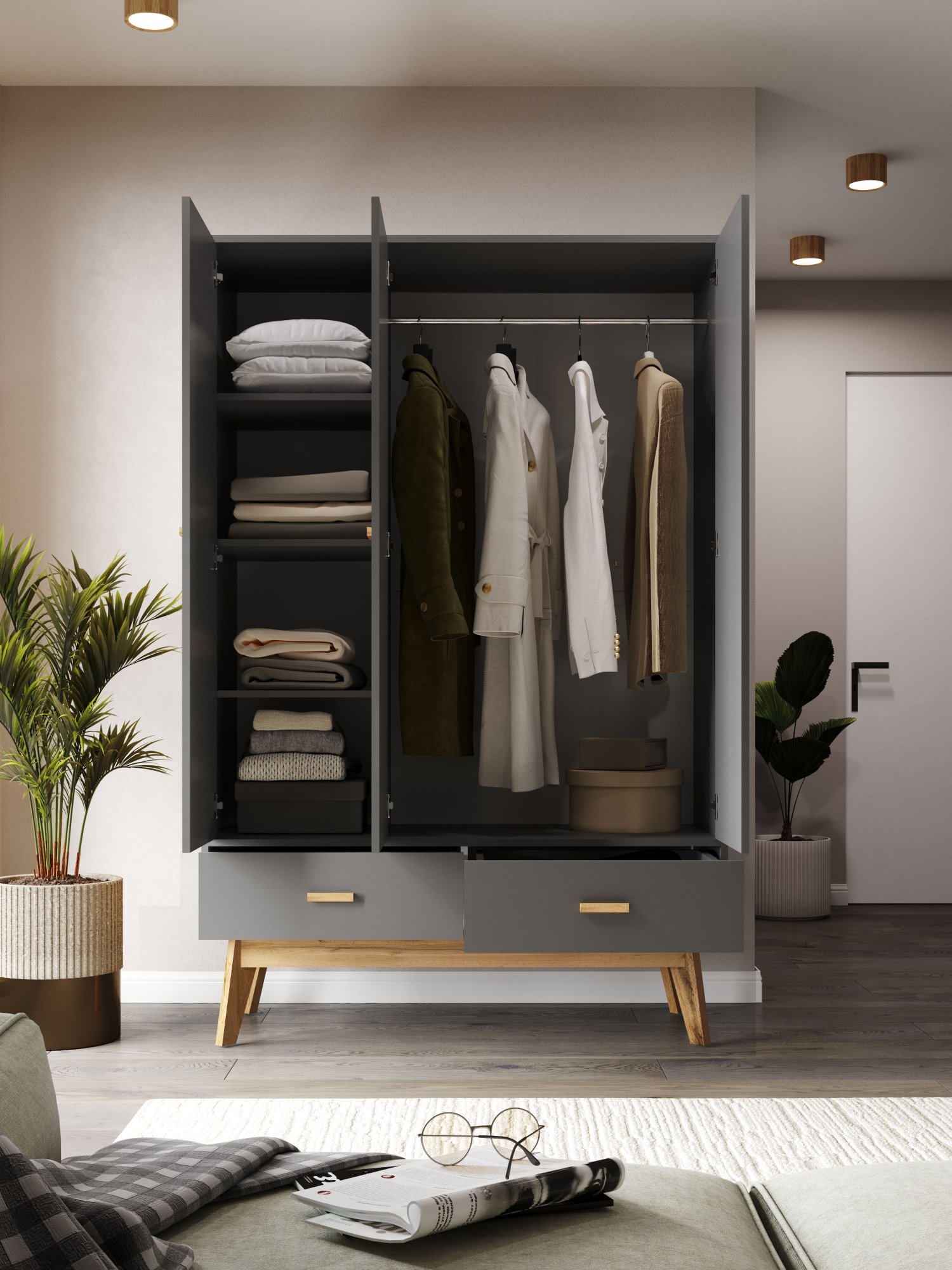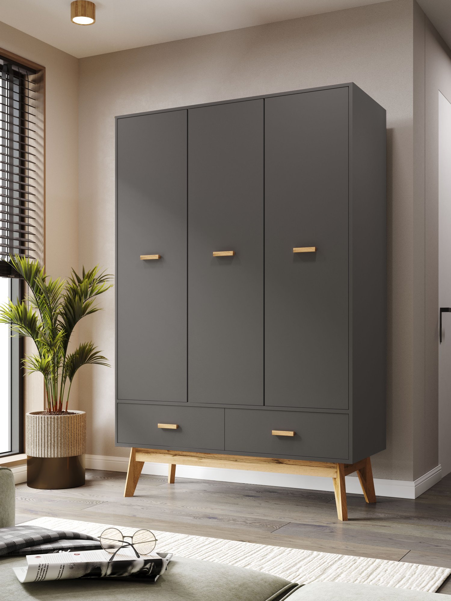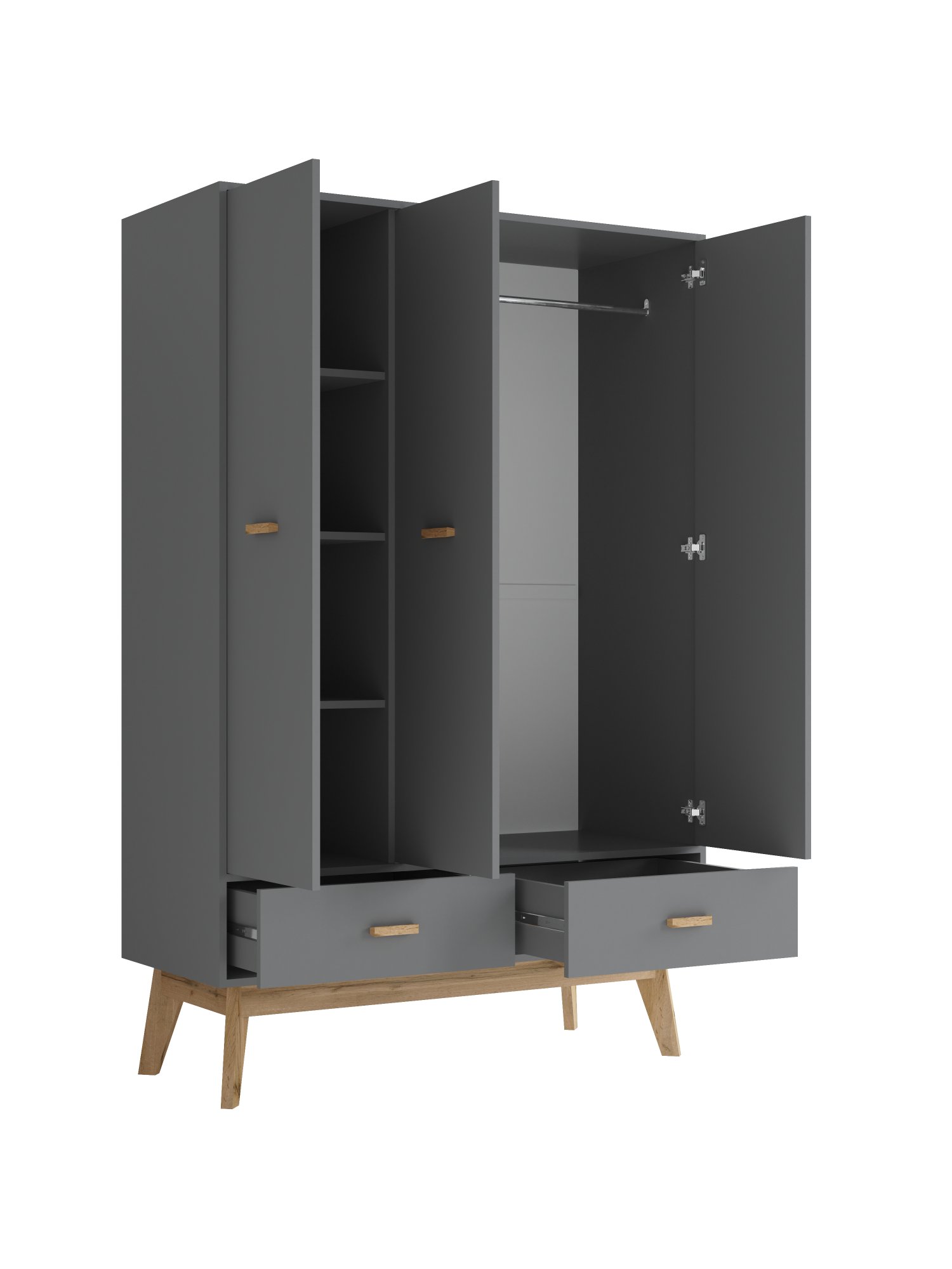 3-х дверный распашной шкаф Радиорама 2123 с двумя ящиками идеальное решение для вашего интерьера. Этот шкаф распашной обладает всеми необходимыми функциями и стильным дизайном. Он позволяет организовать пространство и хранить вещи в порядке. Создан из высококачественных материалов, этот шкаф 3-х дверный обеспечивает надежность и долговечность. Он также имеет высокие ножках, что придает ему легкость и изящность. В данной модели присутствуют 2 выдвижных ящика, которые позволяют удобно разместить аксессуары или белье. Шкаф для одежды с полками и штангой обеспечивает удобство хранения различных типов одежды. Вы сможете организовать пространство так, чтобы все было под рукой. Он станет отличным дополнением к вашему интерьеру и поможет сохранить порядок в вашей комнате.