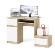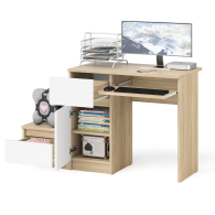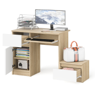 Небольшой стол компьютерный Мори МС-1 левый с тумбой и выдвижной панелью для клавиатуры. Тумба имеет нишу с полочкой за распашной дверкой и выдвижной ящик на роликовых направляющих. Стол компьютерный Мори МС-1 левый не имеет универсальной сборки - выдвижной ящик расположен слева. Открывание ящика и дверей производится за счет пространства между планками и фасадами. Выдвижной ящик на роликовых направляющих L=350 мм. неполного выдвижения обеспечивают комфортную эксплуатацию.