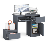 Аккуратный стол Мори МС-1 правый компьютерный с тумбой и выдвижной панелью для клавиатуры. Тумба имеет нишу с полочкой за распашной дверкой и выдвижной ящик на роликовых направляющих. Стол компьютерный Мори МС-1 правый не имеет универсальной сборки - выдвижной ящик расположен справа. Открывание ящика и дверей производится за счет пространства между планками и фасадами. Выдвижной ящик на роликовых направляющих L=350 мм. неполного выдвижения обеспечивают комфортную эксплуатацию.