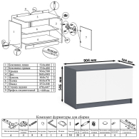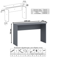 На нижних кромках опор предусмотрены пластиковые подпятники для защиты поверхности пола от механических повреждений. Поставляется в разобранном виде в надёжной упаковке, с комплектом сборочной фурнитуры и инструкцией по сборке.