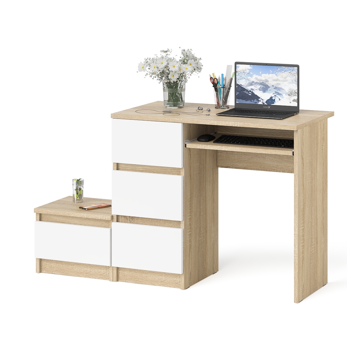 Отзывы о Столплит Компьютерный стол три ящика Мори МС-6 левый с тумбой 400 Дуб сонома светлый/Белый
