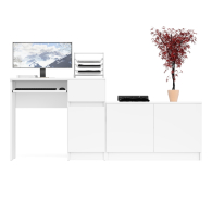 Комплектация включает стол Мори МС-1 правый компьютерный и тумбу Мори МА900.1. Продуманная конструкция позволяет убрать лишние предметы, тем самым сохраняя единый стиль оформления помещения. Отсутствие ручек главное преимущество данной модели. Роль ручек выполняют сами фасады.