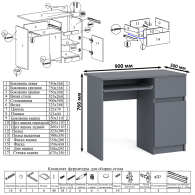 стола компьютерного - 90х50х76,6 см. Особенности - ящики справа.