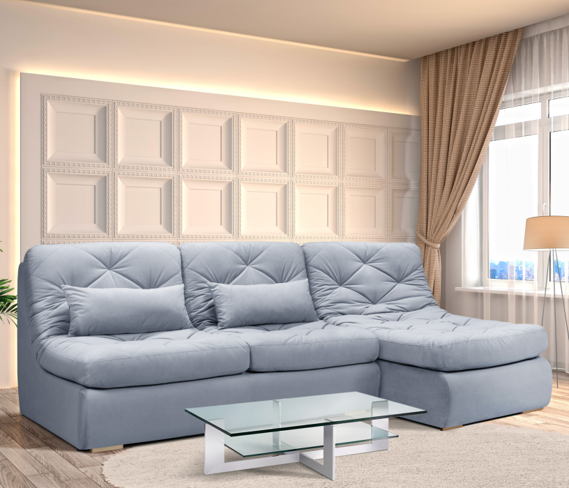 Угловая часть дивана при желании легко меняет свое расположение. Обивка дивана выполнена в качественном велюре, с хорошими техническими характеристиками.