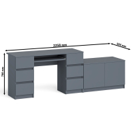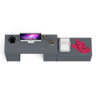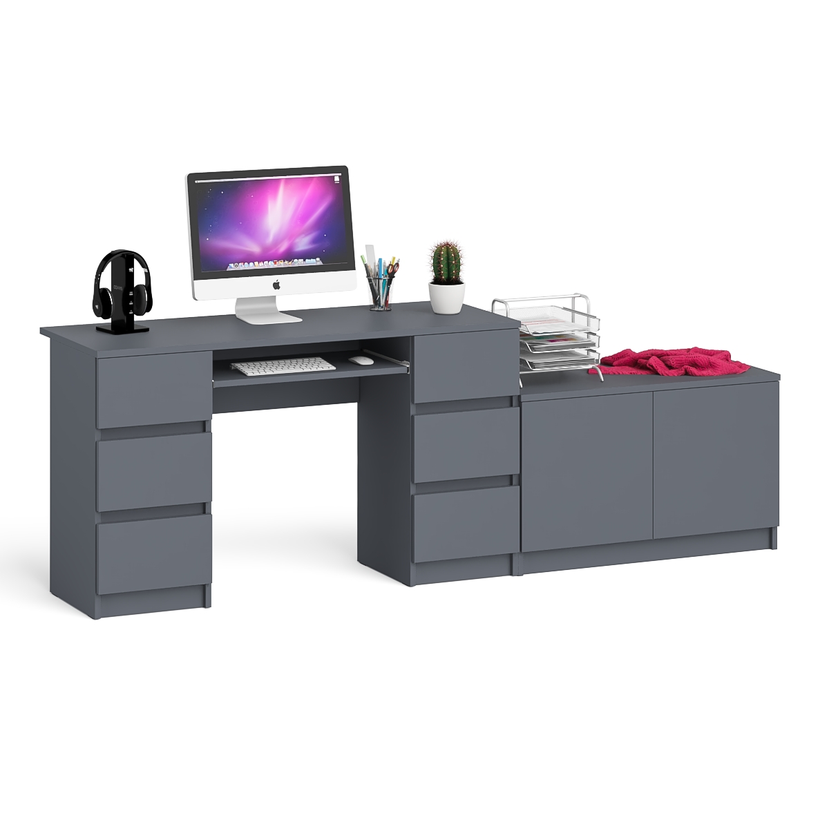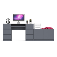 Комплектация включает компьютерный стол с двумя тумбами Мори МС-2 и тумбу Мори МА900.1. Продуманная конструкция позволяет убрать лишние предметы, тем самым сохраняя единый стиль оформления помещения. Отсутствие ручек главное преимущество данной модели. Роль ручек выполняют сами фасады.