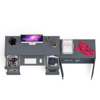 Компьютерный стол с двумя тумбами Мори МС-2 оборудован шестью ящиками и выдвижной полкой для клавиатуры. Под столешницей по бокам расположены две тумбы с тремя выдвижными ящиками в каждой. Открывание ящиков производится за счет пространства между планками и фасадами. Выдвижные ящики на роликовых направляющих L=350 мм. неполного выдвижения обеспечивают комфортную эксплуатацию. За распашными дверкми тумбы Мори МА900.1 расположена полка по центру, что позволяет убрать лишние предметы, тем самым сохраняя единый стиль оформления помещения.