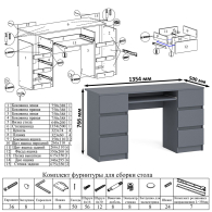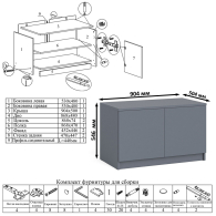 На нижних кромках опор предусмотрены пластиковые подпятники для защиты поверхности пола от механических повреждений. Поставляется в разобранном виде в надёжной упаковке, с комплектом сборочной фурнитуры и инструкцией по сборке.