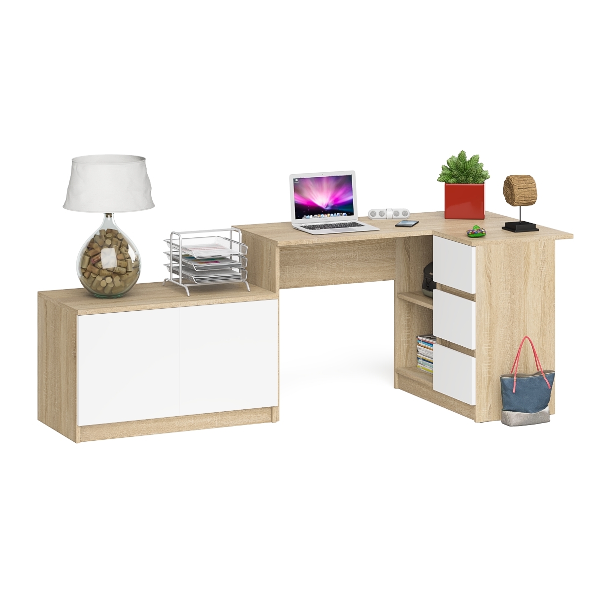 Отзывы о Столплит Тумба широкая Мори 900 и угловой стол компьютерный Мори правый Дуб сонома светлый/Белый