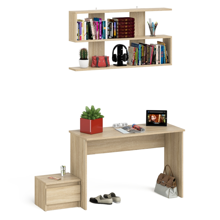 Отзывы о Столплит Стол письменный Мори 1200 с тумбочкой и навесной полкой 1200 Дуб Сонома