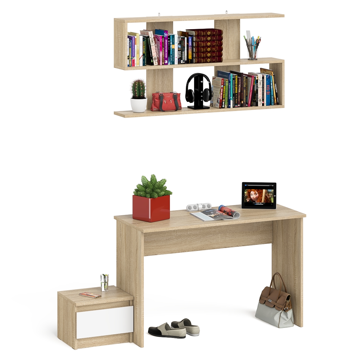 Отзывы о Столплит Стол письменный Мори 1200 с тумбочкой и навесной полкой 1200 Дуб сонома светлый/Белый