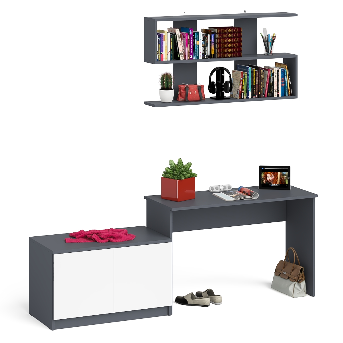 Выполнено в 5 цветах: белый, графит, графит/белый, дуб сонома и дуб сонома/белый.