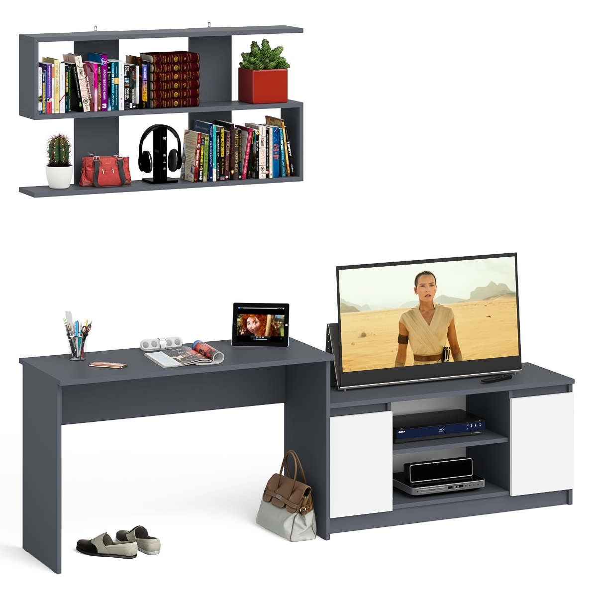 Отзывы о Столплит Широкая тумба Мори 1200 с письменным столом 1200.1 и полкой Графит/Белый
