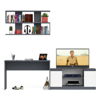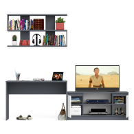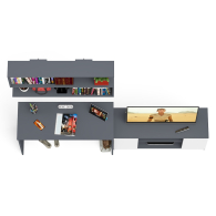 Комплектация включает стол письменный Мори МСП1200.1, тумбу ТВ Мори МТВ1200.1 и навесную полку Плк-1200. Отсутствие ручек главное преимущество данной модели. Роль ручек выполняют сами фасады.