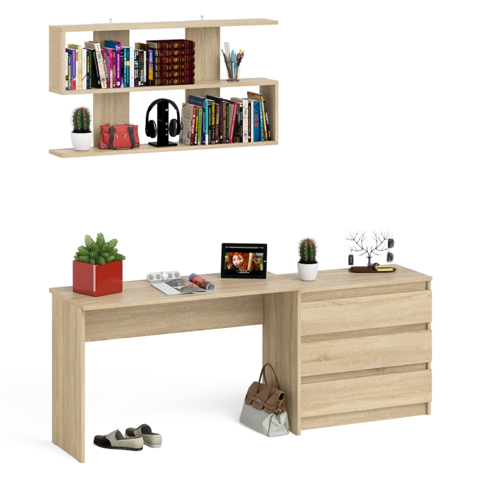 Отзывы о Столплит Комод три ящика Мори 800 с письменным столом 1200 и навесной полкой 1200 Дуб Сонома