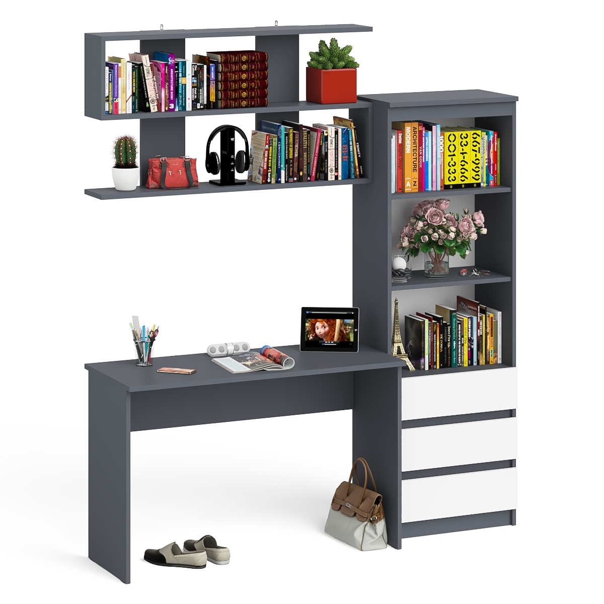 Отзывы о Столплит Стеллаж-комод Мори с письменным столом на 1200 и навесной полкой на 1200 Графит/Белый