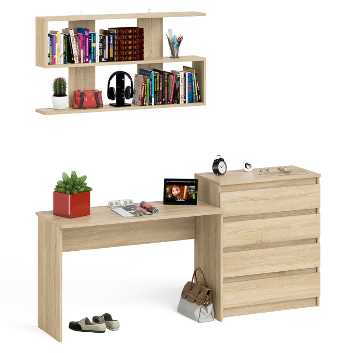 Отзывы о Столплит Комод Мори четыре ящика МК800.4 с письменным столом с навесной полкой на 1200 Дуб Сонома