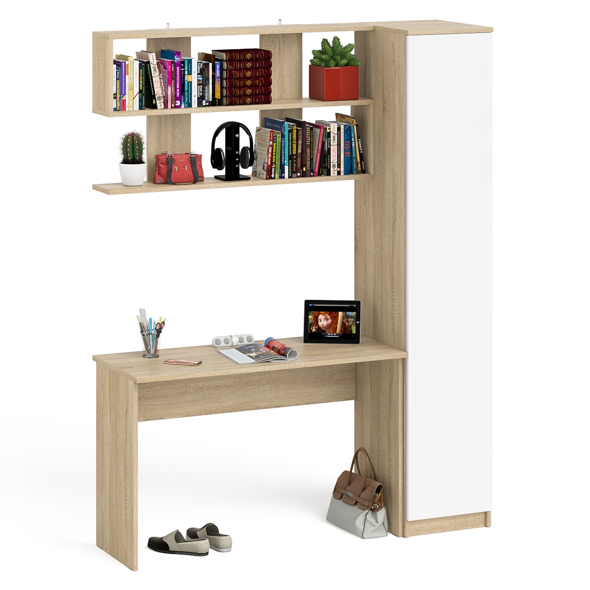 Отзывы о Столплит Пенал высокий с дверкой с письменным столом Мори МСП1200.1 и открытой навесной полкой Дуб сонома светлый/Белый