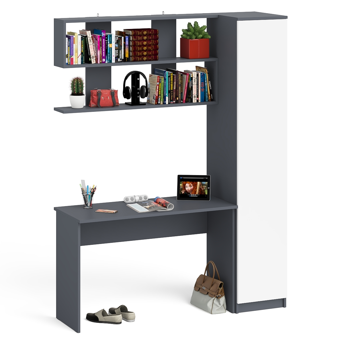 Отзывы о Столплит Пенал высокий с дверкой с письменным столом Мори МСП1200.1 и открытой навесной полкой Графит/Белый