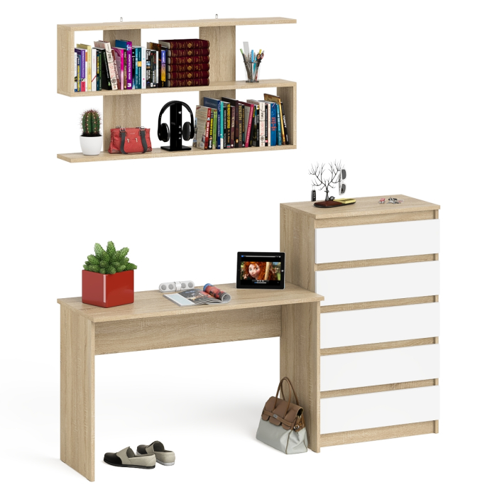 Выполнено в 5 цветах: белый, графит, графит/белый, дуб сонома и дуб сонома/белый.