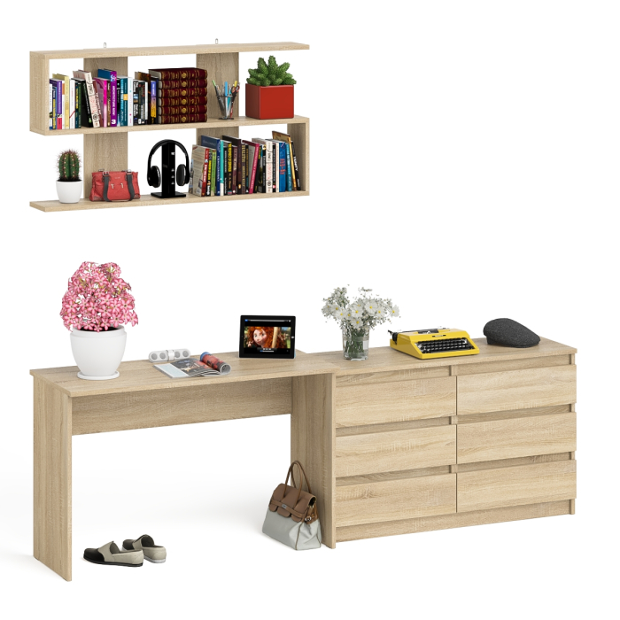 Отзывы о Столплит Мори стол письменный 1200.1 с полкой 1200 и широким комодом Дуб Сонома