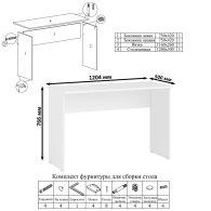 На нижних кромках опор предусмотрены пластиковые подпятники для защиты поверхности пола от механических повреждений. Поставляется в разобранном виде в надёжной упаковке, с комплектом сборочной фурнитуры и инструкцией по сборке.