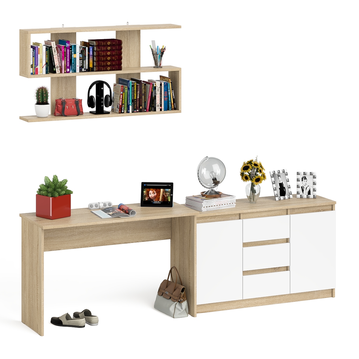 Выполнено в 5 цветах: белый, графит, графит/белый, дуб сонома и дуб сонома/белый.