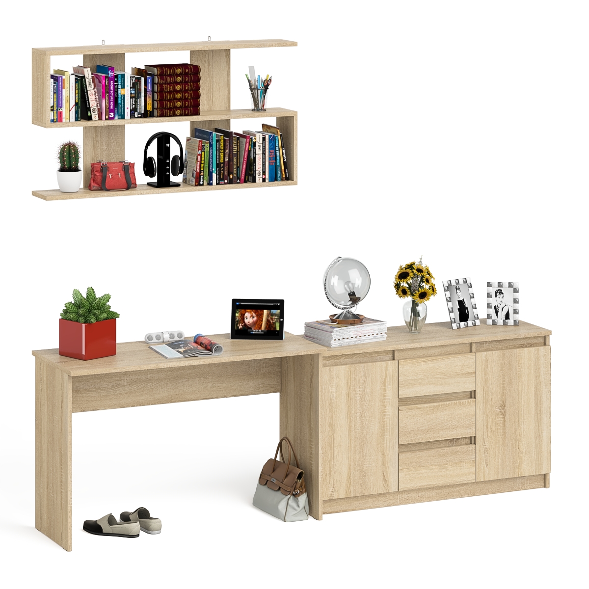 Отзывы о Столплит Стол письменный Мори 1200 с открытой полкой и тумбой-комодом Дуб Сонома