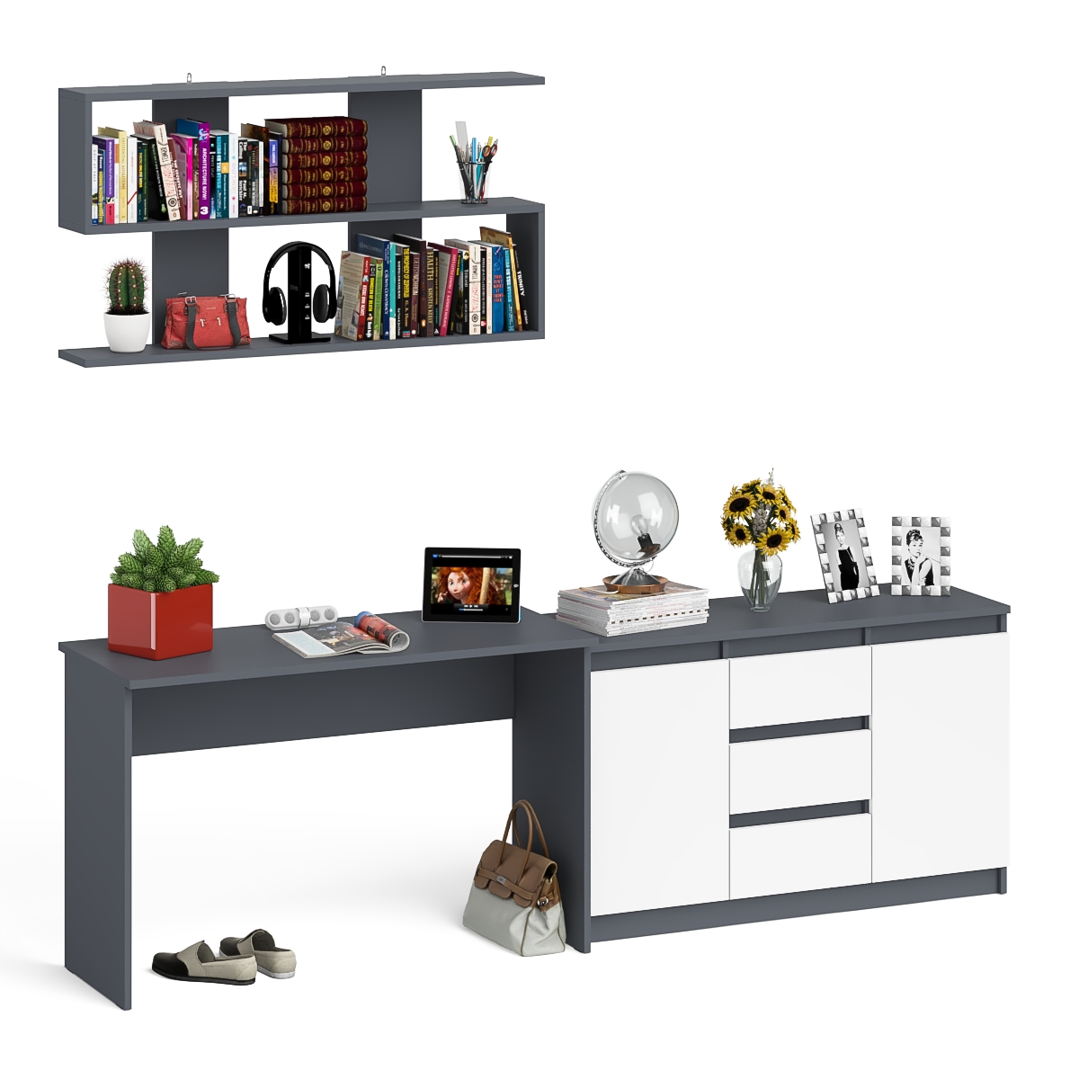 Выполнено в 5 цветах: белый, графит, графит/белый, дуб сонома и дуб сонома/белый.