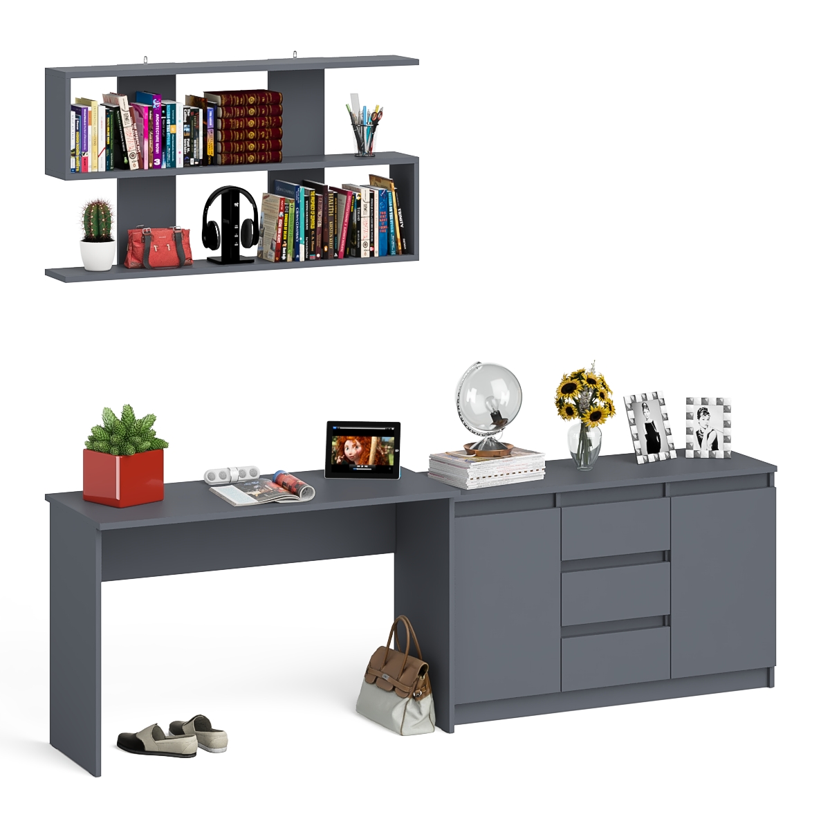 Отзывы о Столплит Стол письменный Мори 1200 с открытой полкой и тумбой-комодом Графит
