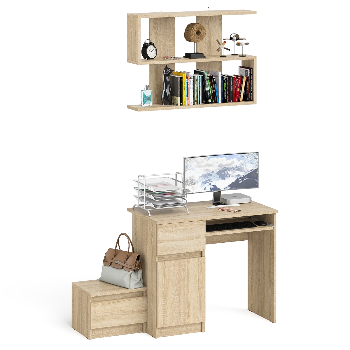 Стол компьютерный Мори МС-1 левый с тумбой и полкой 900 - минималистичный дизайн и доступная цена позволяет наслаждаться качественной и современной мебелью без значительных финансовых затрат!