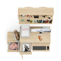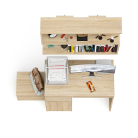 На нижних кромках опор предусмотрены пластиковые подпятники для защиты поверхности пола от механических повреждений. Поставляется в разобранном виде в надёжной упаковке, с комплектом сборочной фурнитуры и инструкцией по сборке.
