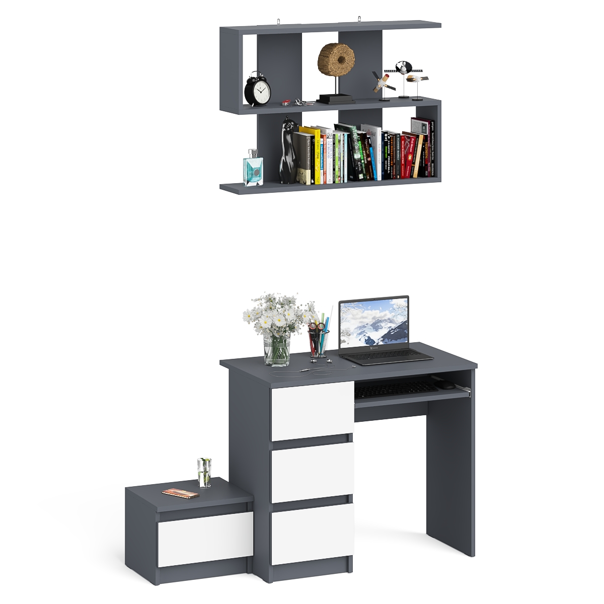 Отзывы о Столплит Стол компьютерный три ящика МС-6 левый с тумбочкой ТМП400 и навесной полкой 900 Мори Графит/Белый
