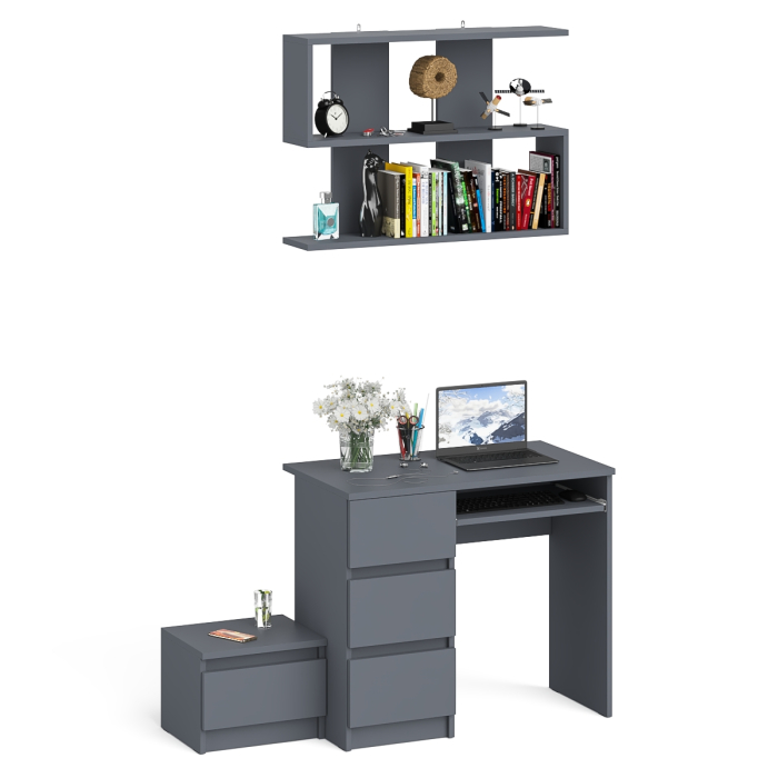 Стол компьютерный три ящика МС-6 левый с тумбочкой ТМП400 и навесной полкой 900 Мори - минималистичный дизайн и доступная цена позволяет наслаждаться качественной и современной мебелью без значительных финансовых затрат!