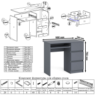 На нижних кромках опор предусмотрены пластиковые подпятники для защиты поверхности пола от механических повреждений. Поставляется в разобранном виде в надёжной упаковке, с комплектом сборочной фурнитуры и инструкцией по сборке.