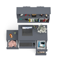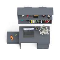 Комплектация включает стол компьютерный три ящика Мори МС-6 правый, малую тумбу Мори ТПМ400.1 и навесную полку Плк-900. Отсутствие ручек главное преимущество данной модели. Роль ручек выполняют сами фасады.