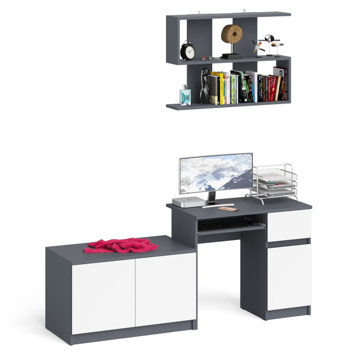 Выполнено в 5 цветах: белый, графит, графит/белый, дуб сонома и дуб сонома/белый.
