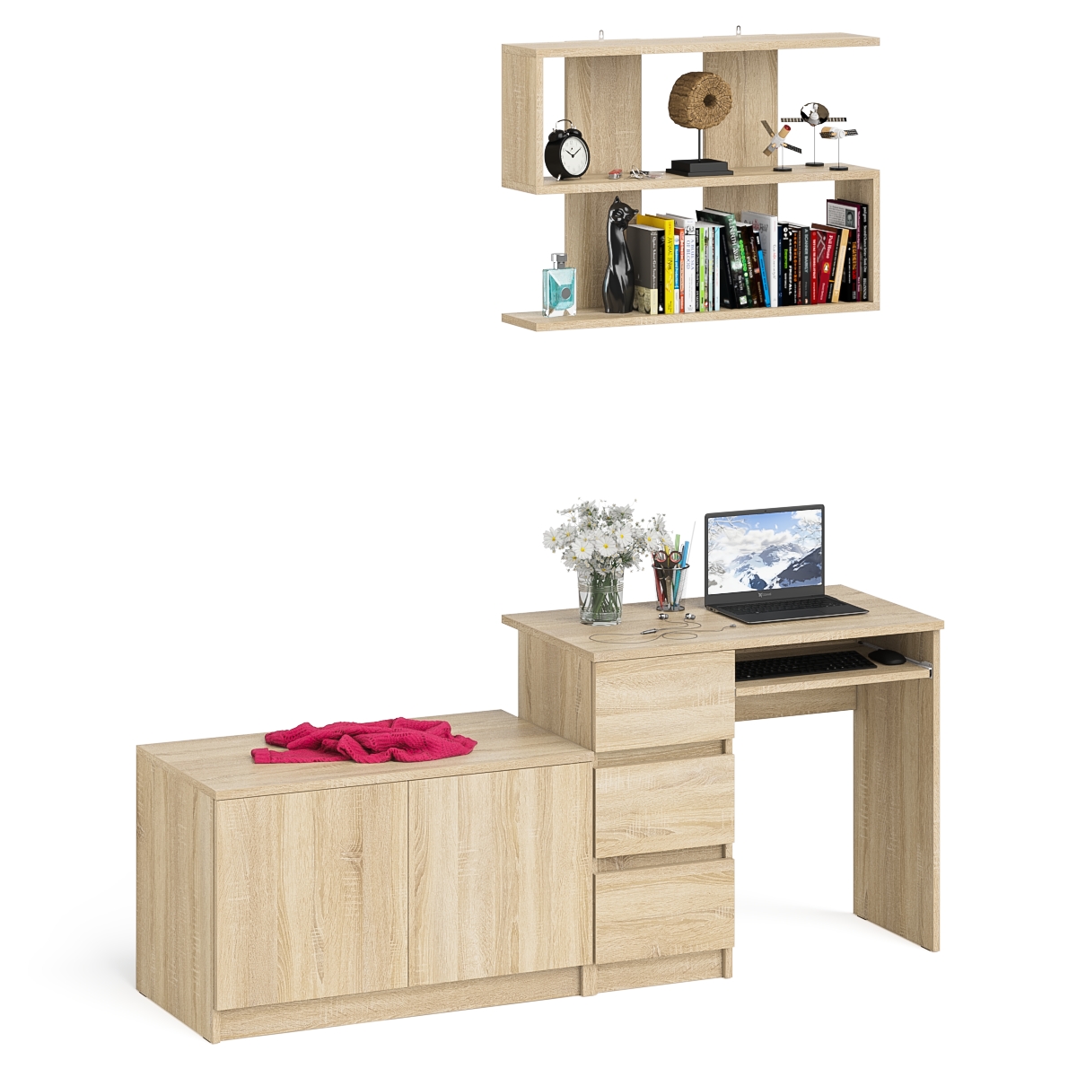 Отзывы о Столплит Тумба с дверками МА900 с компьютерным столом МС-6 левым и полкой 900 Дуб Сонома