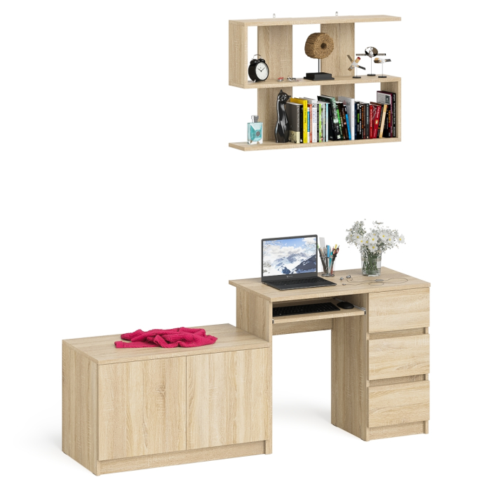 Отзывы о Столплит Открытая полка Мори 900 с компьютерным столом Мори МС-6 правый и тумбочкой с дверками Дуб Сонома