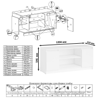 Тумба ТВ Мори МТВ1200.1 состоит из открытой ниши по центру и двумя закрытыми распашными дверками по краям. Все ниши имеет полочку по середине. На тумбе достаточно места для размещения телевизора диагональю 47 дюймов. Можно использовать как ТВ тумбу, так и обычную для хранения и размещения Ваших вещей.
