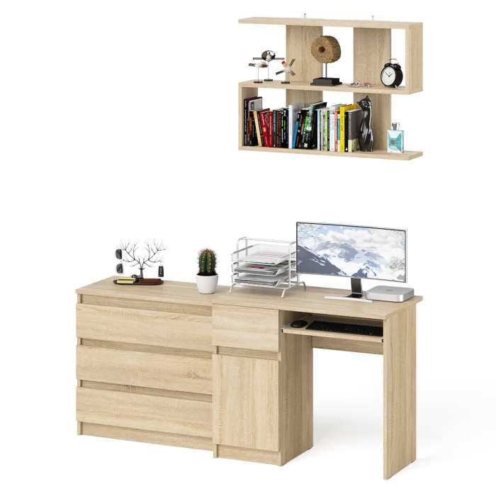 Отзывы о Столплит Однотумбовый стол компьютерный Мори МС-1 левый с комодом три ящика и навесной полкой 900 Дуб Сонома
