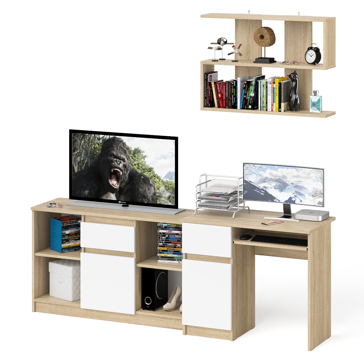 Тумба для техники МТВ1204.1 с компьютерным столом Мори МС-1 левым и полкой навесной - минималистичный дизайн и доступная цена позволяет наслаждаться качественной и современной мебелью без значительных финансовых затрат!