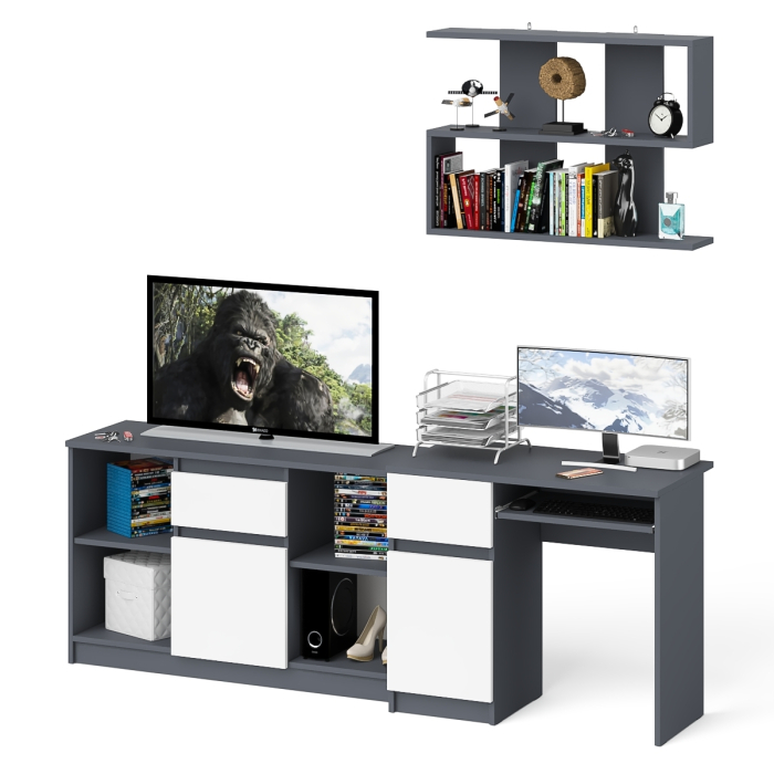 Отзывы о Столплит Тумба для техники МТВ1204.1 с компьютерным столом Мори МС-1 левым и полкой навесной Графит/Белый