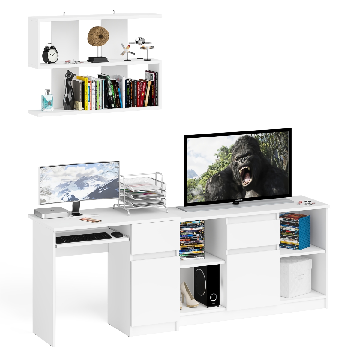Открытая полка Мори 900 с компьютерным столом МС-1 правый и тумбой 1204-1 - минималистичный дизайн и доступная цена позволяет наслаждаться качественной и современной мебелью без значительных финансовых затрат!