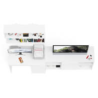 Комплектация включает стол Мори МС-1 правый компьютерный, тумбу ТВ Мори МТВ1204.1 и навесную полку Плк-900. Отсутствие ручек главное преимущество данной модели. Роль ручек выполняют сами фасады.