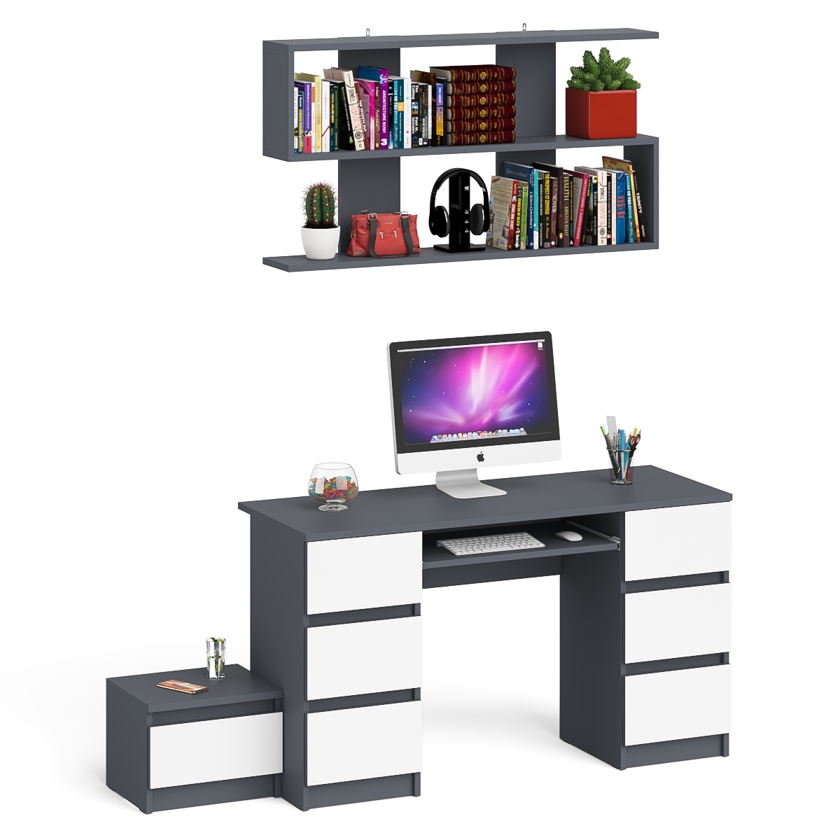 Отзывы о Столплит Двухтумбовый стол компьютерный Мори МС-2 с тумбочкой с ящиком и полкой на 1200 Графит/Белый